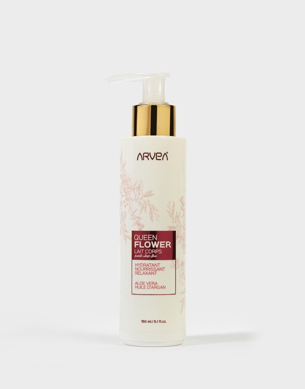 مصمَّم ليمنح البشرة عناية متكاملة، حليب الجسم من أرفيا غنيّ بالألوة فيرا، وزيت الأرغان، وصمغ طبيعي المصدر. يرطّب البشرة بعمق، ويغذّيها بكثافة ليجعلها ناعمة، ويمنح إحساسًا بالاسترخاء. بقوامه الكريمي غير الدهني وسهل التطبيق، يتغلغل بسرعة ويترك طبقة ناعمة، واقية وغير لزجة على البشرة. أما عطْره المستوحى من معطّر الجسم زهرة كوين ، فيُطيل أمد النفحات العطرية الفاكهية الشهية لهذا الأخير